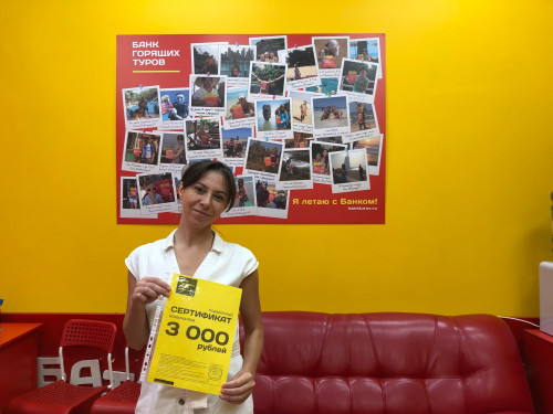 Первый раз обратилась в Банк горящих туров. Выбрала компанию по совету, очень низкая цена. Очень понравился сервис в офисе продаж в Красноярске. Желаю вам стабильного процвета...