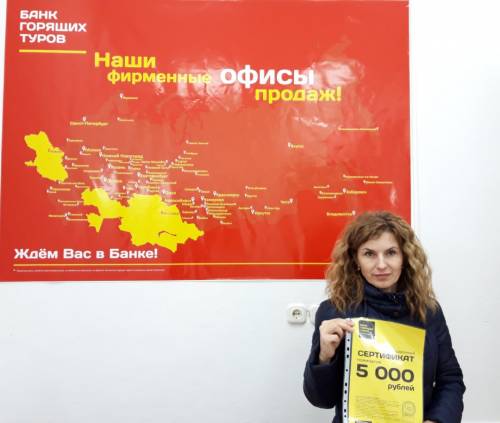 Скидки хорошие! Обращалась в Банк горящих туров четвернтый раз, нравится сервис в офисе города Междуреченска. Удобно искать на сайте туры. Жду в будущем скидок ещё больше!...