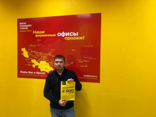 Первый раз обратился в Банк горящих туров. Привлекла цена и хорошие отзывы в интернете. Понравился сервис в офисе, сайт на "4" из "5" . Продолжайте в том же дух...