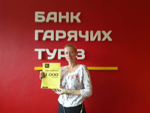 Первый раз обратилась в Банк горящих туров. Выбрала вашу компанию по цене предложения. Понравилось обслуживание в офисе. Удобно подбирать туры на официальном сайте. Жду скидки в бу...