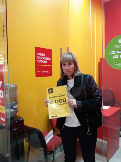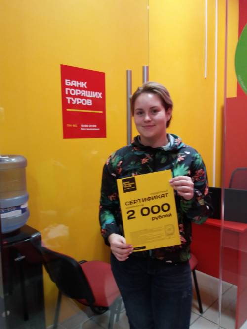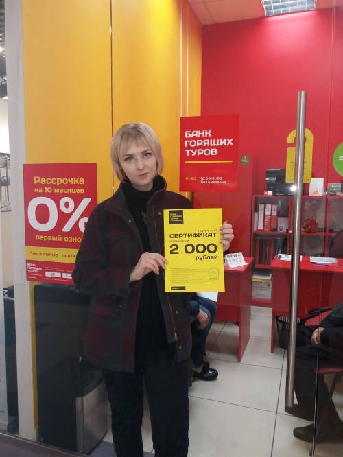 Компания предлагает выгодные цены. Понравился сервис - всё очень быстро и понятно. Искали туры именно на вашем сайте. Спасибо за скидку по сертификату!...