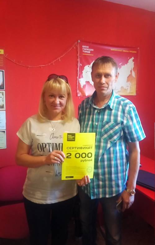 Первый раз обратилась в компанию Банк горящих туров, по совету друзей. Понравился сервис в офисе продаж, удобно пользоваться сайтом. В будщем от компании ожидаю больших скидок....