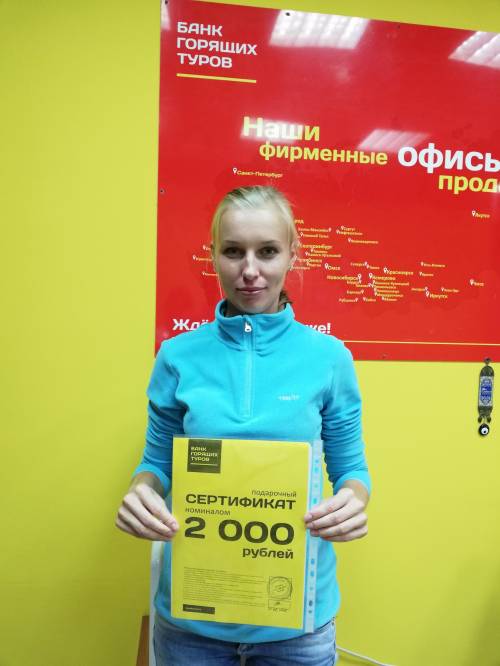 Впервые обращалась в Банк горящих туров, здесь самые низкие цены. Понравился сервис в фирменном офисе продаж, удобно пользоваться официальным сайтом. Ожидаю дальнейшего сотру...