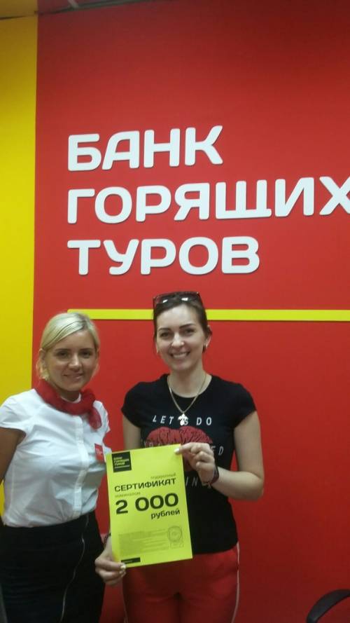 Второй раз обратилась в офис компании Банк горящих туров, выгодные цены. Понравился сервис в офисе, удобно искать туры на сайте самостоятельно. От вашей компании в будущем ожидаю с...