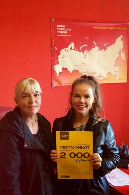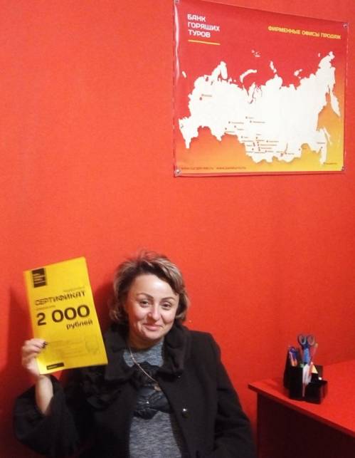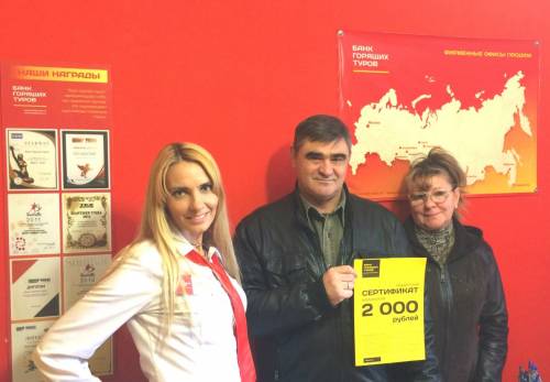 Мы ваши постоянные туристы, уже в 6 раз обращаемся именно к вам! Нам очень нравится и сервис в вашем офисе и сайт! В дальнейшем бы уж очень хотелось бы скидок постоянным туристам!...